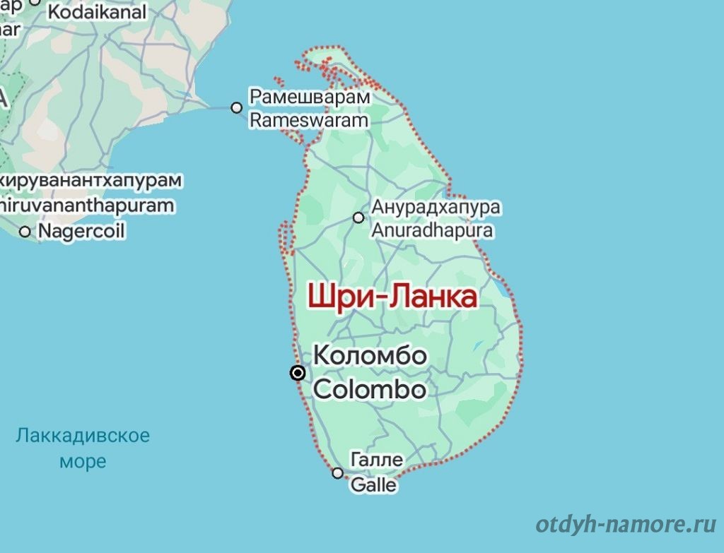 - Со всех сторон Шри-Ланка омывается Индийским океаном. Длина береговой линии составляет 1 340 километров. От материковой части полуострова Индостан она отделена Маннарским заливом и Полкским проливом.
